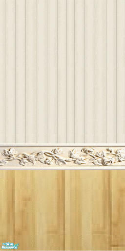 A pine wood panel bottom with a striped beige top and a vined chair rail molding to complete the look