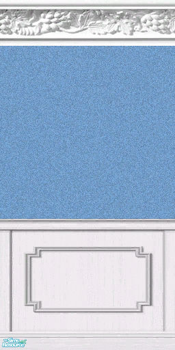 Baby Blue Textured Paper with Fruit Crown Molding and Double Coiffed Wainscoting