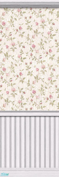 Seamless pattern. Beautiful small rose pattern wallpaper with a distressed texture and a white beadboard panel **by froilan**