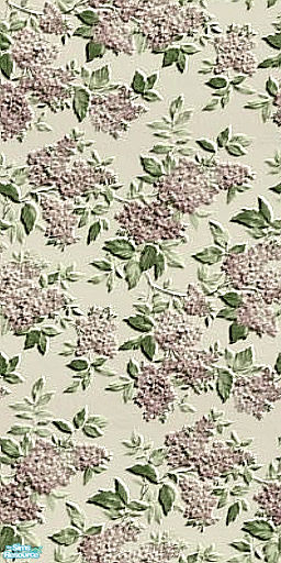 In chooses of white, mauve, sea green, and cream paint this wallpaper set with its textured lilacs is beautiful in game.