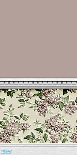 In chooses of white, mauve, sea green, and cream paint this wallpaper set with its textured lilacs is beautiful in game.