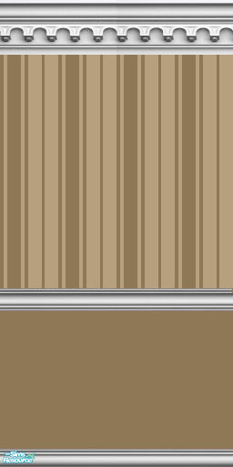 A wall with Brown bottom, Brown Oxford stripe top and gothic arch crown molding with matching chair guard and baseboard.
