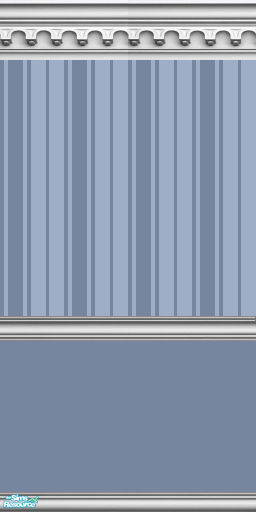 A wall with Dusty Blue bottom, Dusty Blue Oxford stripe top and gothic arch crown molding with matching chair guard and baseboard.