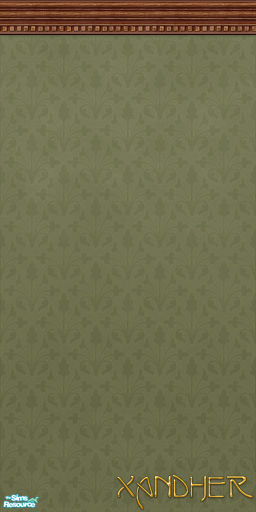 A simple delicately patterned wall with decorative crown moulding in rich cherry stained wood.