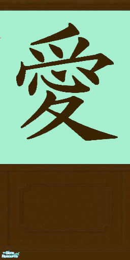 Japanese Kanji \"Love\" Symbol wall Covering. Part of the \"Green Tea Coloured Love Bedroom\".