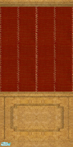 Elegant red wallpaper with golden stripes, framed in polished bird\'s eye maple, based on textures provided by LewLew for texture challenge 59.