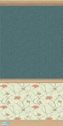 A combination of wallpaper in teal and flowers, framed in polished lightwood, based on textures provided by detimgi for texture challenge 63.