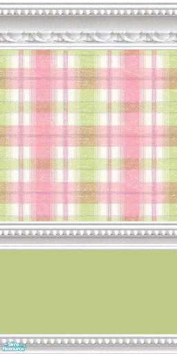 Cheery, bright pink, and lime plaid with white marble beaded mouldings and a lime green base. Find matching jsfCarpets in plaid and solid pink to coordinate your rooms.