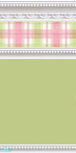 Cheery, bright pink, and lime plaid with white marble beaded mouldings and a tall lime green base. Find matching jsfCarpets in plaid and solid pink to coordinate your rooms.