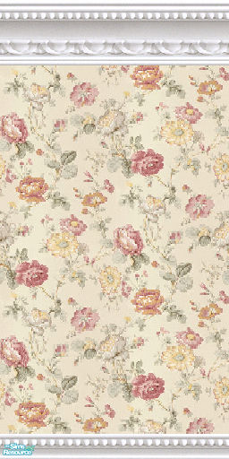 A soft pastel background for scattered pink and tangerine roses, yellow daisies, and light sage leaves. This wall is the full length version and coordinates with all other jsf2WMBR Dusky Pink wallpapers, carpets and tiles.