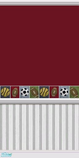 Footballs, basketballs, soccer balls, and more! Bright colors for the baby.. Set includes: 4 walls, crib bedding, changing table, potty chair, and 2 beddings for single and double beds, (red and blue). All base game items. Please see individual items to see the other bedding..