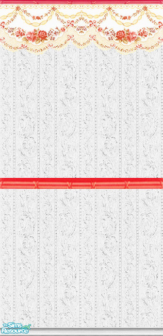 White textured wallpaper with bright rose border. Part of the Candy Apple Bedroom set by Riverwillows.