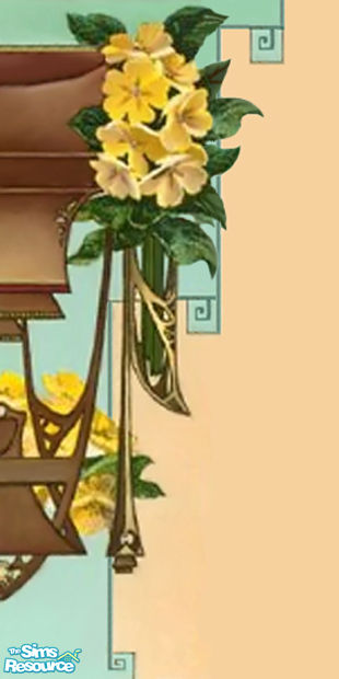 Right half of a large Art Nouveau style urn draped with yellow flowers and deep green foliage: The basis of this set. By: SKS