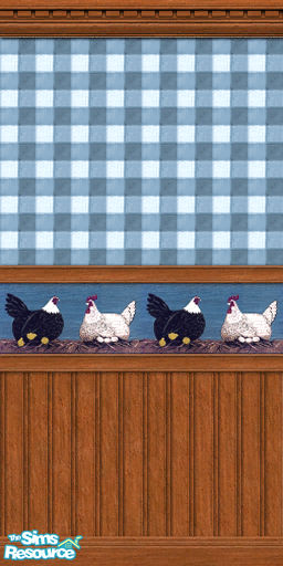 Blue Check Hen Wallpaper with Beadboard and Wainscoting. A nice wallpaper for your country Sims. Enjoy!