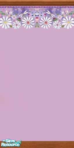 A pinkish purple wallpaper with daisies & dragonflies in the trim. Good for the kids room!