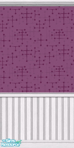 Plum 1950's wallpaper with white beadboard.