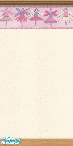 Cream dotty wallpaper with a pink and purple fairy border.