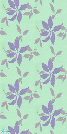 A green wallpaper with lilac falling leaves