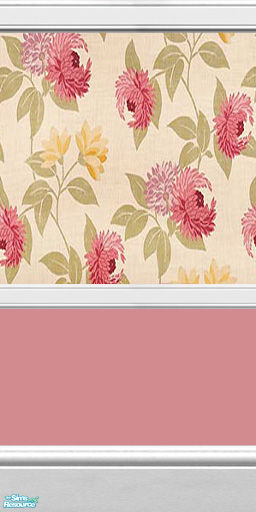 Pink Floral Wallpaper with Pink Base Paint. Finished with White Wood Crown, Chair Rail and Kick.