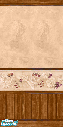 Sims 2 — Ivory Rose Wall 2 by TSR Archive — Beautiful faux finished walls with a textured Ivory rose border and dark wood