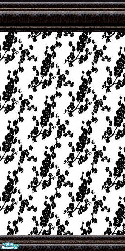 In subtley textured black mouldings, a pattern of flower covered branches. Find in the Wallpaper category.