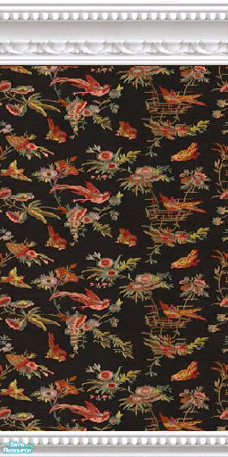 Striking red koi and goldfish on a black ground are held in white marble beaded mouldings. Matching seamless jsf2CarpetGoldfish also available in the set. Made to coordinate with katcat\'s recolor of Cashcraft\'s \"Vintage Charm\" bedroom and jsf2WMBRAutumnStripe wallpaper available on my minisite.