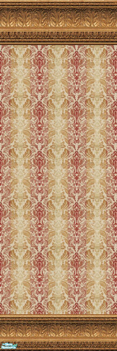 A rich, royal red and gold damask wallpaper is held in new moldings made of gilded palm leaves and wood carvings. Matching jsf2CarpetLARoyal can be found in this set. Always TSRAA