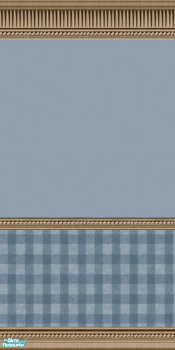 The Ladora Blue Wall Covering features a muted blue paint above the wood chair rain and two-toned blue plaid wallpaper below.