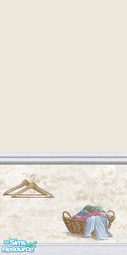 Clothes hangers and a basket full of clothes on yellow, cream and tan.