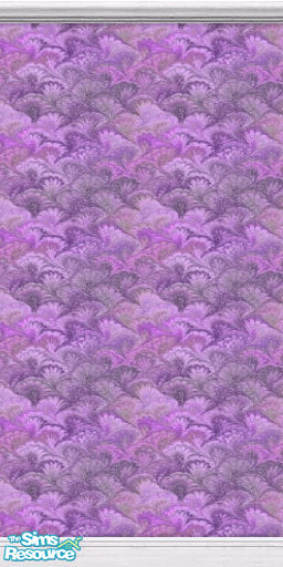 Primarily lavender wallpaper in a patern that may remind your Sims of Peacock feathers.