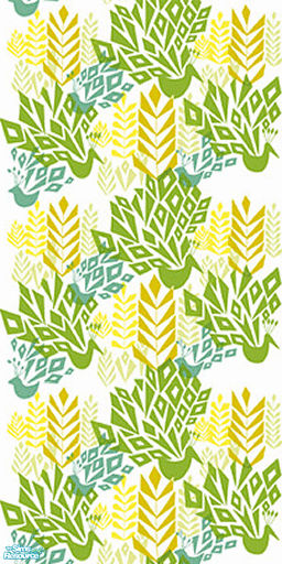 Scandanavian inspired Peacock and Fern pattern wallpaper Set. Set includes two patterns (left and right facing) as well as three matching solids in yellow, peacock and lime colors.
