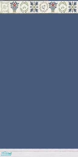Blue wall with quilt patterned border. Good for any room of the house!