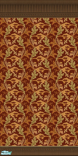 This wallpaper is of the same classic design as the bedding. The dark walnut crown moulding and baseboard continue the craftsman style.