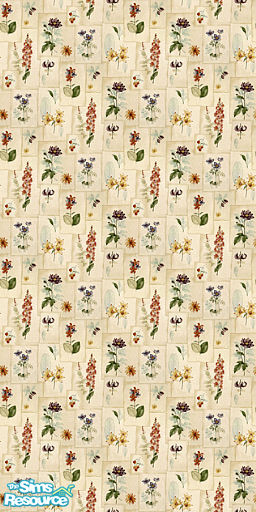 Spring flowers in squares. Flowers are in blue, red, yellow and purple on a beige background wallpaper.
