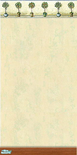 A subtle wallpaper perked up by a boarder of tiny potted trees.