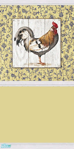 A selection of 12 Country themed walls and 4 matching floor tiles. Walls are a mix of cream and blue with chicken murals and white wood panelling. Walls and tiles also have floral and checkered motif.