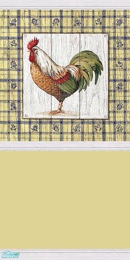 A selection of 12 Country themed walls and 4 matching floor tiles. Walls are a mix of cream and blue with chicken murals and white wood panelling. Walls and tiles also have floral and checkered motif.