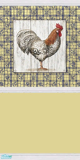 A selection of 12 Country themed walls and 4 matching floor tiles. Walls are a mix of cream and blue with chicken murals and white wood panelling. Walls and tiles also have floral and checkered motif.
