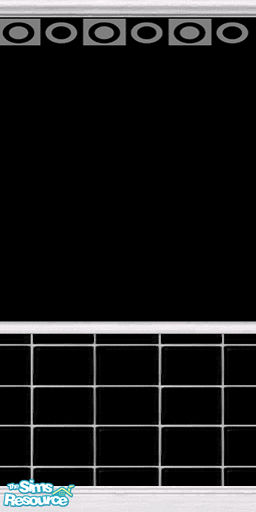 This is a black wall topped with the "Circles on Squares" trim and on the bootm, black tile. There is white wood trim.