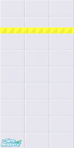 Yellow tiled wall. Matches the yellow tiled floor. Part of a set.