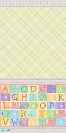 Due to the immense popularity of the first set of ABC baby wallpapers, here are some new and completely different ones! They are in Gingham, Plaid and tartan in all colours ranging from green, to blue, to light blue, to yellow, to pink, to purple to peach! There's a very nice relief stucco border and wooden beading, both painted white for an elegant contrast.