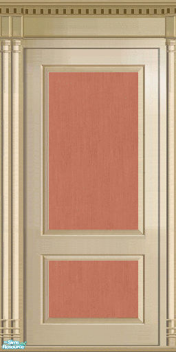 A Victorian style wall with elegant turnings and dentile crown holds coral, stried wallpaper in its two panels. Matching jsf2VictorianCoralFull single panel and jsf2CarpetCoral also available.