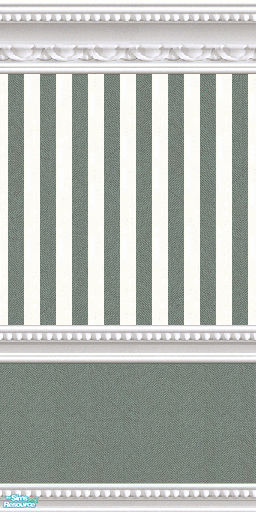 Beaded and carved white marble wainscoting holds ivory and cerulean striped wallpaper. Below the chair rail lightly textured matching cerulean wallpaper. Enjoy!