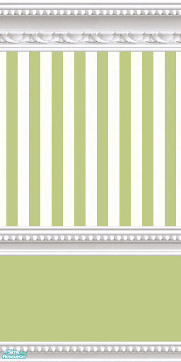 Beaded and carved white marble wainscoting holds ivory and a soft shade of lime striped wallpaper. Below the chair rail matching lime paint. Enjoy!