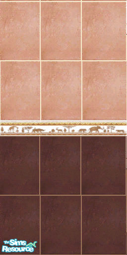 Clay and chocolate neutral big ceramic tiles and white border with african dawn scene