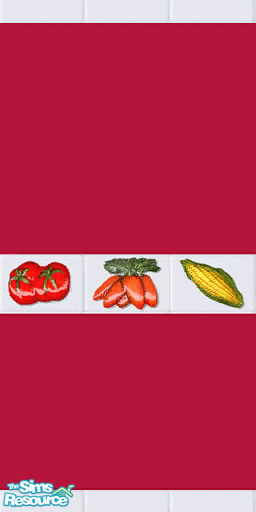 Red Painted Wall with White Ceramic Picture Tile Accent. part of the Red & White Kitchen Collection by Miss Beki