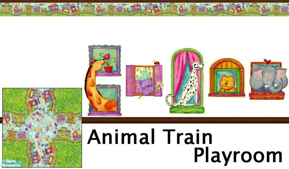 Animal Train makes a delightful playroom. This vivid border in blue, green, yellow, pink, orange, red, plus the matching decals incourage a child's imagination along new tracks.