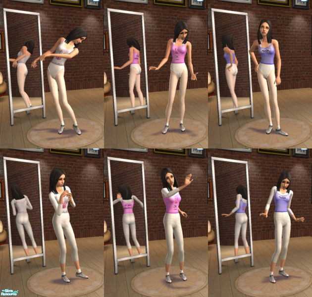 Athleticwear for teens, based on my Teen Cheer tops. The bodysuit is an altogether new design using Maxis' swim mesh, and the leotard uses my solid white swimsuit. PS: It's for teens... the bodysuit is supposed to look like it doesn't fit quite right. I will use the perfected texture for the adult set.