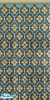 A lovely blue and gold fabric wall with a neutral ceramic floor.