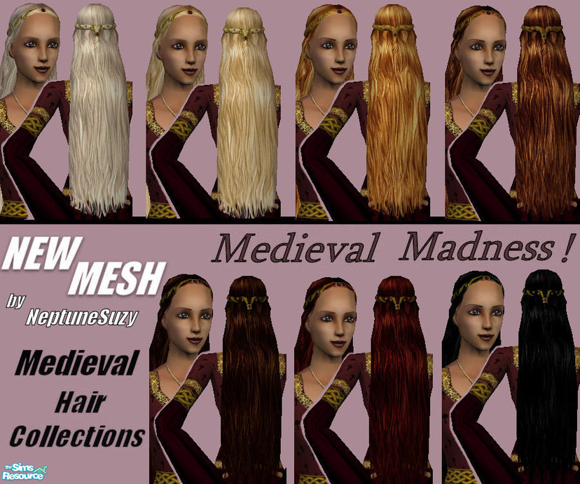 Your sims will love this Long Flowing Medieval Style Hair adorned with Gold Ribbon! New Mesh is included in this set! *You will need the Mesh and at least one recolor for it to show up in your game. Enjoy!